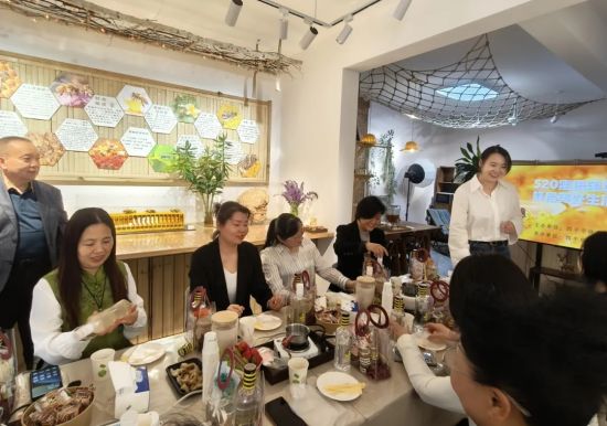 活動中,老季·玉和蜜莊創(chuàng)始人通過現(xiàn)場講解、圖文展示、品鑒蜂蜜及其系列飲品等方式,深入剖析蜜蜂的生態(tài)習(xí)性,蜜蜂與人類生活的緊密聯(lián)系,以及源遠(yuǎn)流長的蜂文化歷史。隨后,在專業(yè)老師的指導(dǎo)下,大家親手調(diào)配蜂蠟,制作蜂蠟唇膏和蜂蜜手膜,感受非遺文化與現(xiàn)代技藝的碰撞融合。